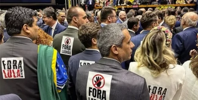 Vários deputados federais, a maioria do Partido Liberal (PL) ao qual pertence o ex-presidente Jair Bolsonaro (PL), protestaram contra o atual mandatário, o ex-presidiário Lula (PT).