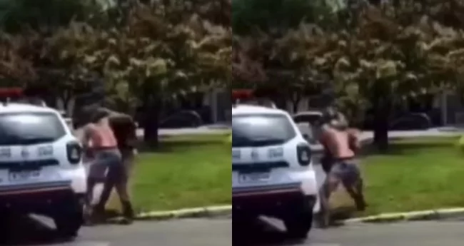 Imediatamente, vários homens apareceram e deram uma “mãozinha” para o policial. Tudo foi gravado e a ação elogiada.