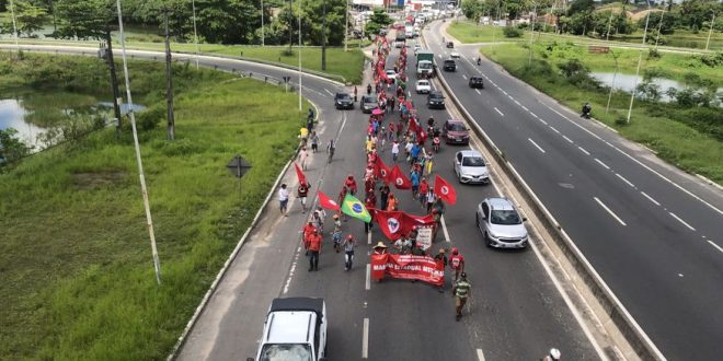 As invasões Terroristas fazem parte de uma campanha nacional denominada Abril Vermelho”. Nesta segunda feira (17), os Terroristas realizaram uma marcha pela BR-230 e avenidas da capital, causando transtornos ao trânsito.
