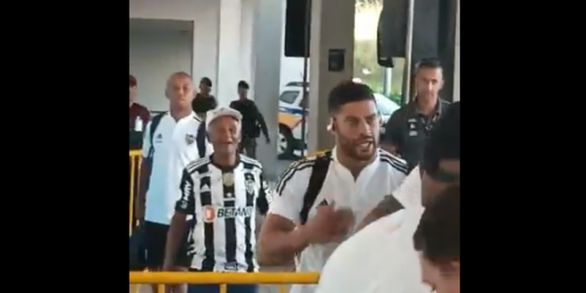 Atletas do Galo estavam saindo do ônibus do clube para entrar no aeroporto quando torcedores do Cruzeiro viram Hulk e o provocaram