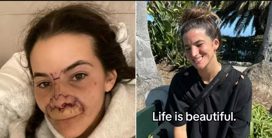 Modelo que teve lábio e parte do nariz arrancados por pitbull comemora a recuperação: ‘A vida é bonita’
