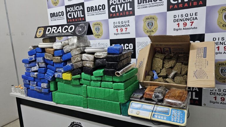 Policiais da Delegacia de Repressão ao Crime Organizado (DRACO), da Polícia Civil, apreenderam quase 100 quilos de drogas. A ação aconteceu nesse sábado (31) em Campina Grande.