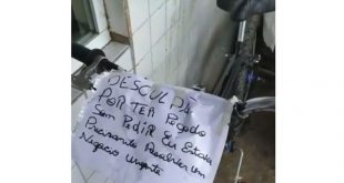 A pessoa que usou a bicicleta furtada devolveu com a garantia de que ela não seria furtada novamente e colocou uma corrente prendendo o equipamento em um ponto fixo. “Desculpa por ter pegado sem pedir. Eu estava precisando resolver um negócio urgente. Estou aqui devolvendo com um cuidado para garantir ...