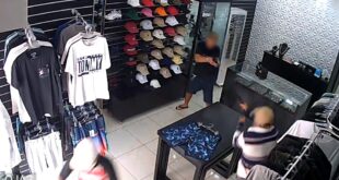 Uma câmera de segurança gravou o momento em que o dono de uma loja de roupas reagiu a um assalto e matou três criminosos a tiros. Nas imagens, é possível ver que os três homens fingem escolher produtos na loja, até o momento em que um deles saca uma arma ...