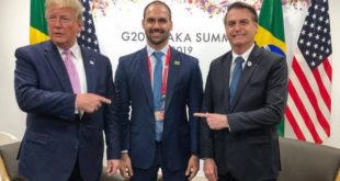 Donald Trump, Eduardo Bolsonaro e Jair Bolsonaro durante a cúpula do G-20 no Japão Foto: Reprodução/Twitter O presidente Jair Bolsonaro afirmou nesta quinta-feira que cogita nomear o filho Eduardo Bolsonaro, o deputado federal pelo PSL-SP, como embaixador do Brasil nos Estados Unidos. — Está no meu radar sim, é uma possibilidade — declarou ...