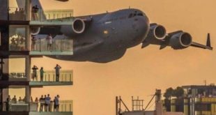 Cargueiro passa próximo de prédios em Brisbane Foto: Reprodução/Facebook(BoardingPass) Moradores de prédios em Brisbane (Austrália) correram assustados para varandas ao ouvir um forte barulho do lado de fora. Na verdade, eram dois aviões – um cargueiro C-17A Globemaster e um caça F/A-18F Super Hornet – da Real Força Aérea do país passando perto dos ...