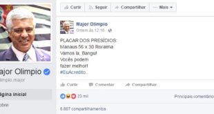 Major Olímpio (SD-SP) publicou mensagem em rede social e fez ‘placar dos presídios’ em referência aos massacres em Manaus e Boa Vista, que vitimaram quase 100 presos. O deputado federal Major Olímpio (SD-SP) publicou em sua página pessoal no Facebook uma mensagem na qual “desafia” os presidiários do Complexo Penitenciário ...