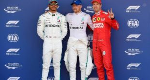 Hamilton (E) não abraça Bottas (C) após perder a pole para companheiro Foto: LLUIS GENE / STF Barcelona – A Mercedes tem um início de temporada dos sonhos na Fórmula 1 em 2019. Pela quinta vez no ano, a equipe conseguiu uma dobradinha na pole position com Valtteri Bottas e ...