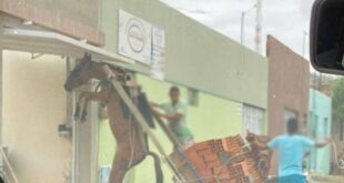 Dono do animal foi identificado e notificado para se apresentar à delegacia. Burro fica suspenso em carroça com excesso de peso no Bairro Salesianos, em Juazeiro do Norte. — (Foto: Divulgação) Um burro ficou suspenso em uma carroça com excesso de peso no Bairro Salesianos, em Juazeiro do Norte. O ...
