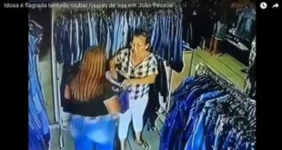 Câmeras de segurança de uma loja localizada na Avenida Josefa Taveira, em João Pessoa, Capital da Paraíba, registrarm o momento em que atendentes flagram uma idosa tentando roubar peças do estabelecimento. A mulher coloca os jeans na sacola sem passar pelo caixa. Quando ela tenta sair, é impedida pelas funcionárias. ...