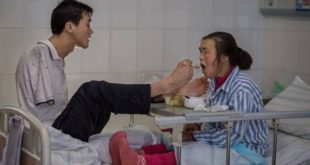 Chen Zifang, de 29 anos, nasceu sem braços. A deficiência, entretanto, não o impede de cuidar da mãe, que está hospitalizada em Enshi (província de Hubei, China). Com os pés, Chen alimenta a mãe, dá os remédios a ela, ajuda no banheiro e até penteia o seu cabelo. O pai de ...