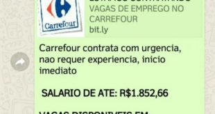 (Foto: Reprodução) Os usuários do WhatsApp precisam ficar mais uma vez atentos. Um novo golpe no aplicativo promete participação em um falso processo seletivo da rede de supermercados Carrefour para infectar o celular da vítima ou realizar cobranças indevidas através de SMS. De acordo com a PSafe, em menos ...
