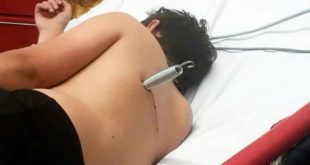 ‘Como uma bala’: mola fica cravada nas costas de adolescente Foto: Reprodução Um defeito em cama elástica deixou um adolescente com uma mola cravada nas costas quando ele praticava saltos no quintal da casa de um amigo, em Sheffield (Inglaterra), no último sábado (31/8). O objeto de metal entrou seis centímetros na costas de Jamie Quinlan. ...