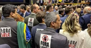 (Reprodução/Internet) Vários deputados federais, a maioria do Partido Liberal (PL) ao qual pertence o ex-presidente Jair Bolsonaro (PL), protestaram contra o atual mandatário, o ex-presidiário Lula (PT). Os parlamentares da base conservadora chegaram com adesivos nas costas e outros na boca, simbolizando a censura a que o Judiciário tem submetido ...