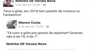 Após o resultado no Tribunal Superior Eleitoral (TSE), que decidiu por unanimidade liberar a candidatura de Emerson Panta, o prefeito de Santa Rita, Netinho de Varzea Nova foi às redes sociais fazer uma comemoração “Taca a gôta, em 2018 tem pedido de música no Fantástico!”. deixando claro que apoiou Panta ...