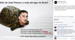 Circula nas redes sociais um panfleto que teria sido confeccionado por um empresário em protesto ao prefeito Luciano Cartaxo (PSD) pela morosidade e lentidão nas obras da Prefeitura de João Pessoa. “Nunca assume sua lentidão” O deputado estadual Raoni Mendes (DEM) destacou nesta quinta-feira (14) que o prefeito ...