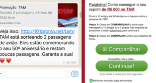 Um novo golpe está circulando no WhatsApp e confundindo muitos usuários do aplicativo de mensagens. Trata-se de uma suposta promoção de passagens aéreas a preços mais baixos, atribuída à Latam. A mensagem traz um link para um site com instruções de como ganhar um cupom de desconto em viagens. A ...
