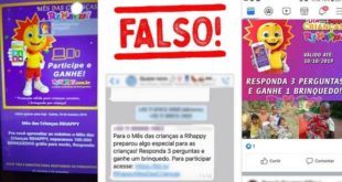 A Ri Happy recomenda que os clientes sempre verifiquem as promoções nos canais oficiais da marca Foto: Reprodução O Dia das Crianças já passou, mas golpistas ainda estão usando links em redes sociais para tentar roubar dados de consumidores por meio de promoções falsas. Desta vez, os criminosos se aproveitaram da data para enviar mensagens ...
