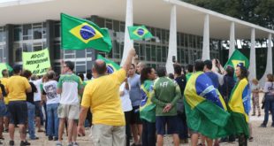 Manifestantes se reuniram esta manhã em frente em Supremo Tribunal Federal (STF), em Brasília, para protestar contra a decisão da Corte que prevê que casos de corrupção e lavagem de dinheiro, quando investigados junto à caixa dois, sejam julgados pela Justiça Eleitoral. A manifestação começou por volta das 10h da ...