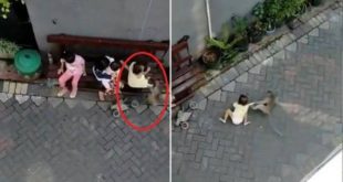 Um macaco que andava de motocicleta de brinquedo foi flagrado tentando “sequestrar” uma menina no vilarejo de Tanjungsari (Java, Indonésia), de acordo com o “Daily Mail”. A cena foi registrada em vídeo. O macaco pedalou por uma rua estreita até encontrar um grupo de pessoas – umas mulher e as três filhas ...