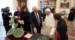O papa Francisco e o presidente dos Estados Unidos (EUA), Donald Trump, se reuniram nesta quarta-feira (24) no Vaticano durante 27 minutos e depois fizeram a troca habitual de presentes. A informação é da Agência EFE. Após a conversa,Trump apresentou sua delegação, da qual fazem parte a mulher Melania, ...