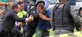 Homem foi atingido por balas de borracha disparadas por policiais do Bope. Refém foi levada para hospital sem ferimentos; sequestrador foi preso. Policiais militares conseguiram render o homem armado com duas facas que fazia uma mulher refém em frente ao Palácio do Buriti, sede do governo do Distrito Federal, no ...