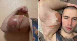 Após cirurgia de emergência, ‘Popeye russo’ volta a exibir braços enormes e choca internautas