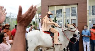 VÍDEO: Após tomar posse montado em boi e vestido com gibão de couro, prefeito reduz próprio salário ao mínimo