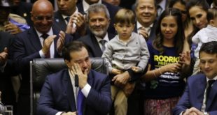Rodrigo Maia após a votação que o reconduziu à presidência da Câmara Foto: Jorge William BRASÍLIA (Reuters) – O deputado Rodrigo Maia (DEM-RJ) conseguiu liquidar a disputa pelo comando da Câmara dos Deputados no primeiro turno e, com 334 votos, elegeu-se presidente da Casa pelos próximos dois anos. Sob a ...