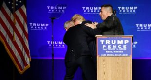 Empresário foi interrompido após confusão no meio da plateia. Agentes chegaram a retirá-lo do palco, mas ameaça de arma era falsa. Agentes do Serviço Secreto dos Estados Unidos interromperam neste sábado (5) um comício do candidato republicano à Casa Branca, Donald Trump, e o retiraram do palco. A ameaça, que ...